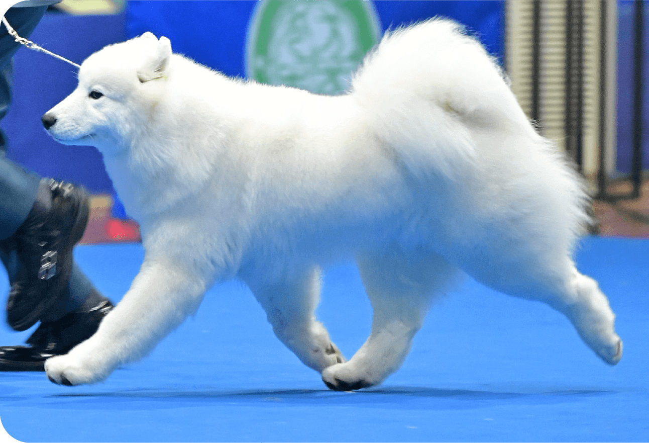 サモエドの真っ白でふわふわの毛並みは、まるで雪のようにやさしく美し見る人の心を和ませます。 特徴的な“サモエドスマイル”は自然と笑顔を誘い、その温かさは言葉を超えて伝わります。北の大地で育まれた逞しさと清らかさを併せ持ち、家族の心に深い安らぎと幸福をもたらす特別な存在です。